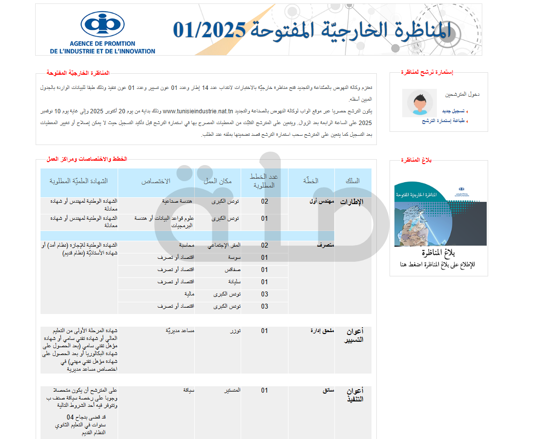 يكون الترشح حصريا عبر موقع الواب لوكالة النهوض بالصناعة والتجديد