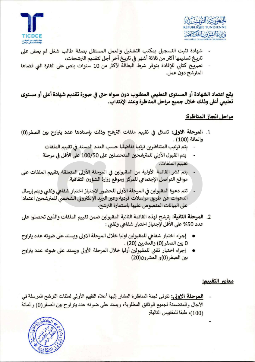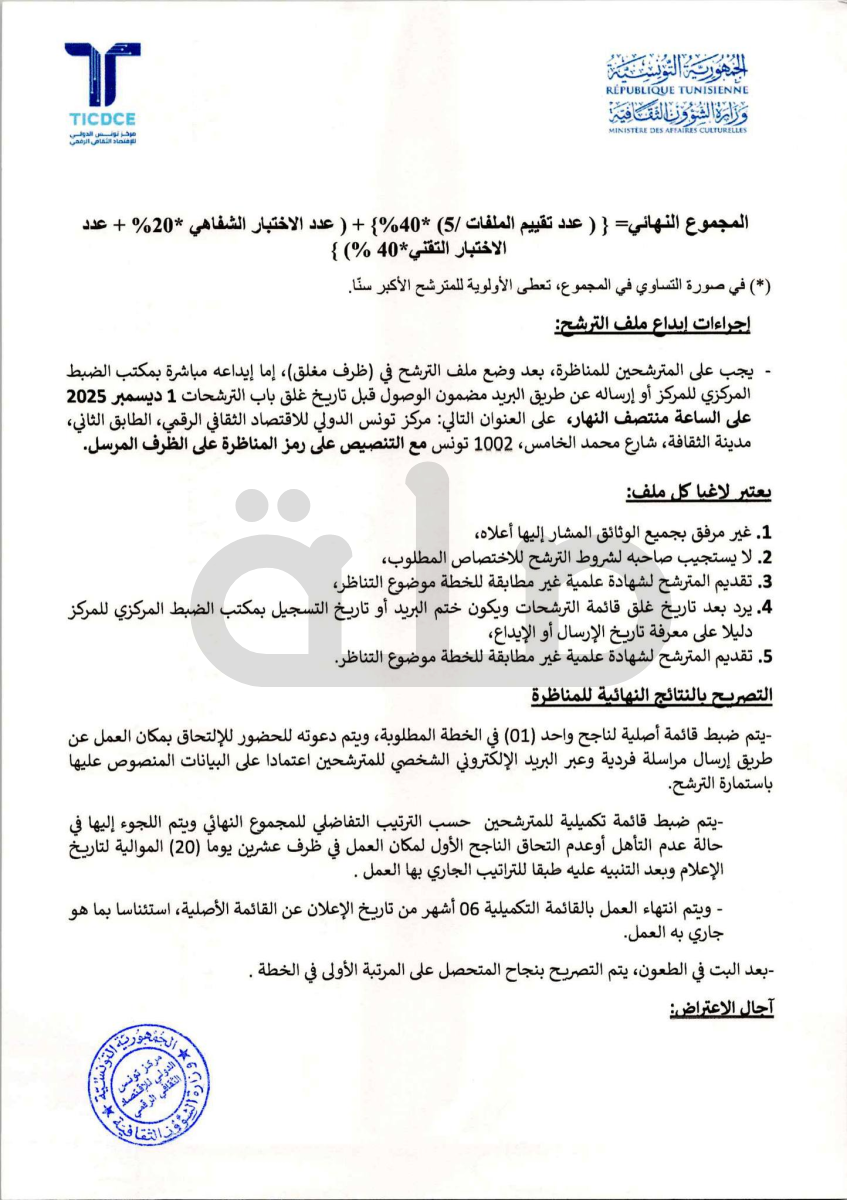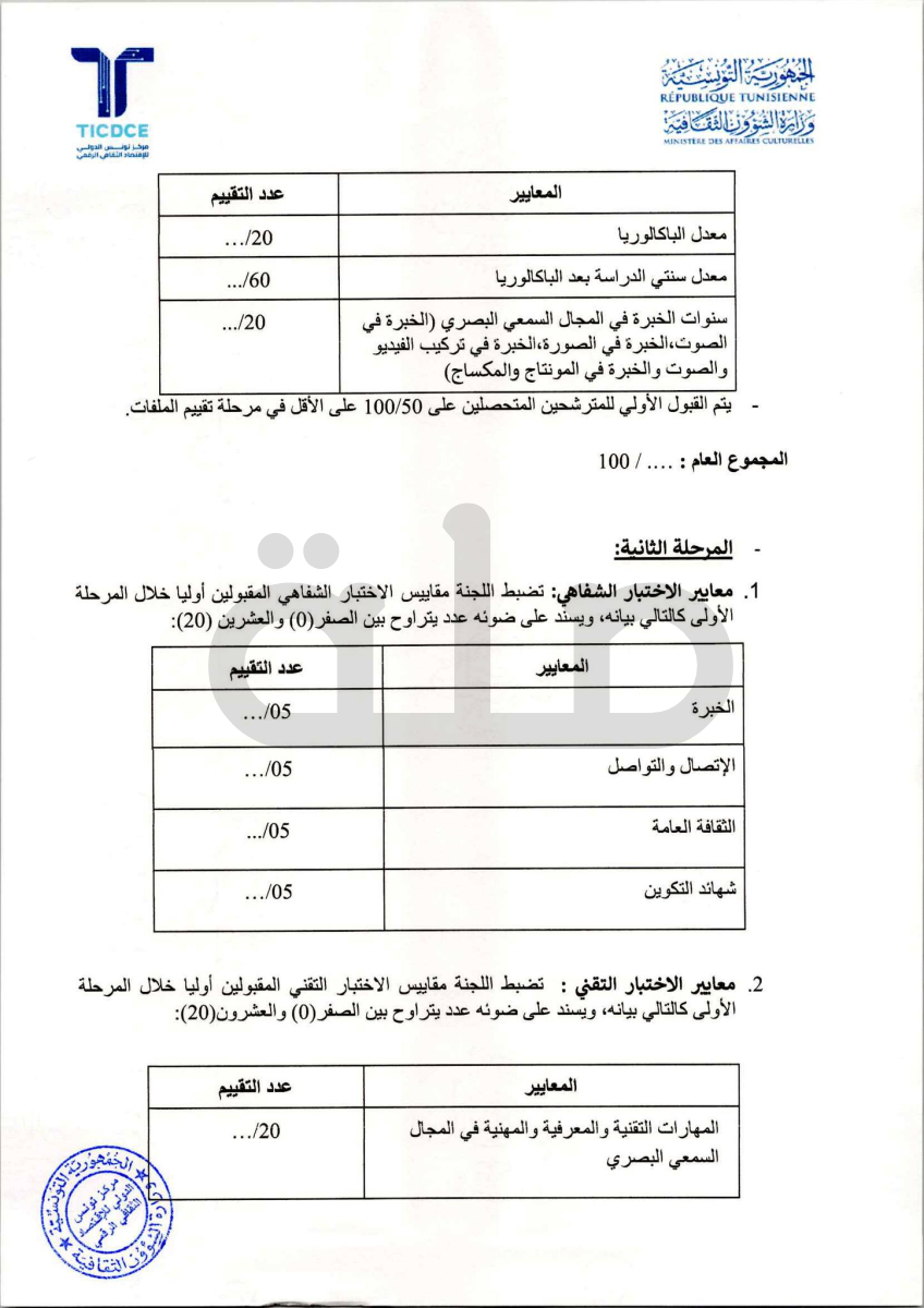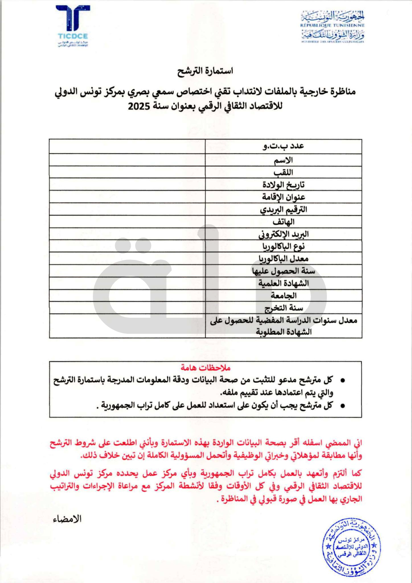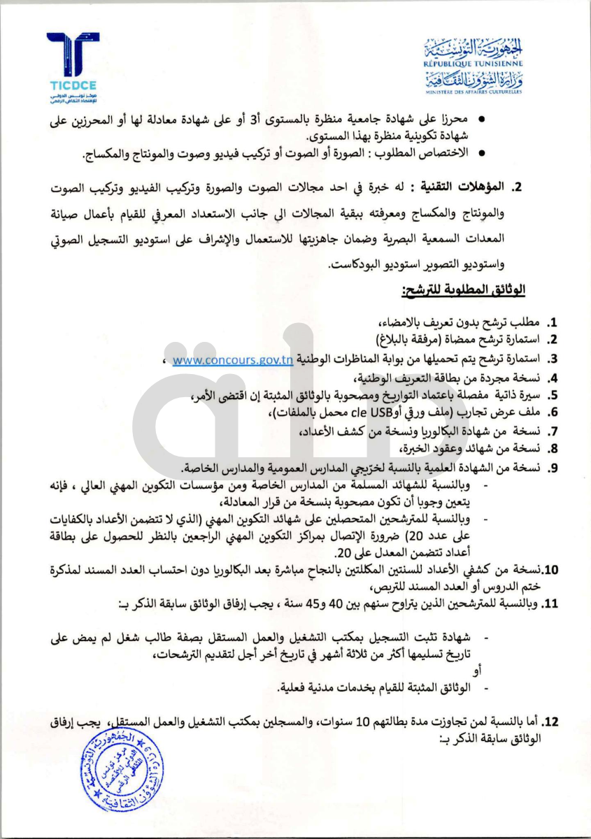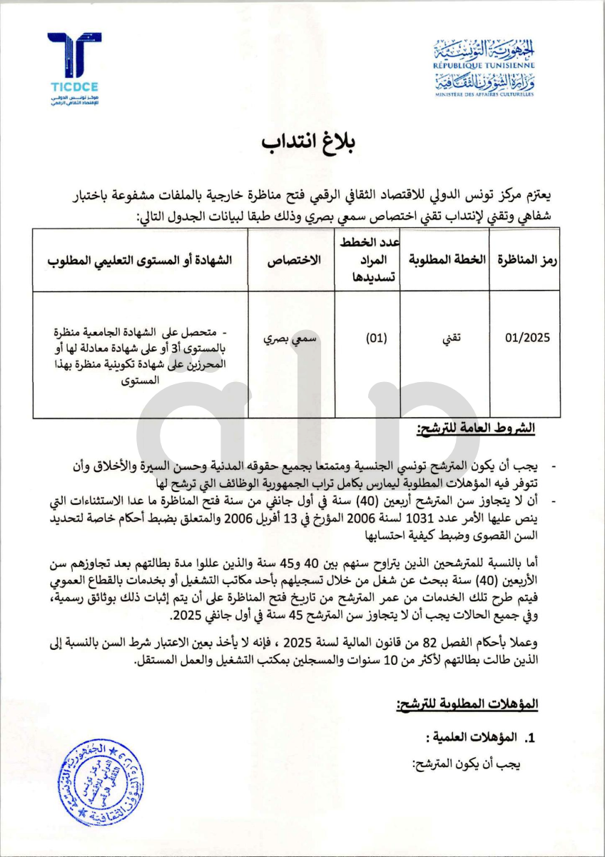 مناظرة لانتداب تقني اختصاص سمعي بصري بمركز تونس الدولي للاقتصاد الثقافي الرقمي